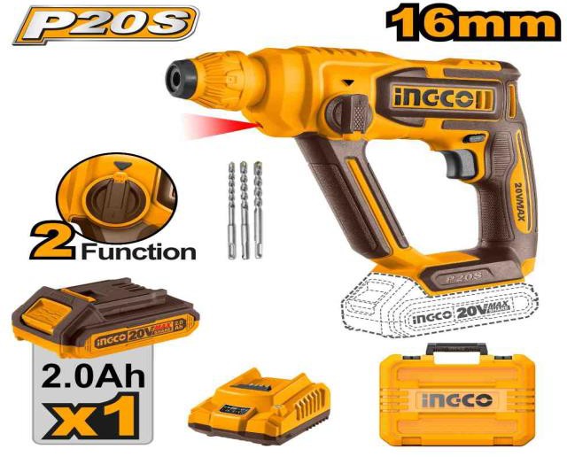 Voltage:20V No-load speed:0-850rpm Impact rate:0-5100bpm Impact energy:1.5J Max drilling capacity:Φ16 in concrete SDS plus chuck system Integrated LED work light Include: 3 Pcs drills 1 Pcs 2.0Ah battery pack(FBLI20011) 1 Pcs charger(FCLI2001) Packed by carrying case